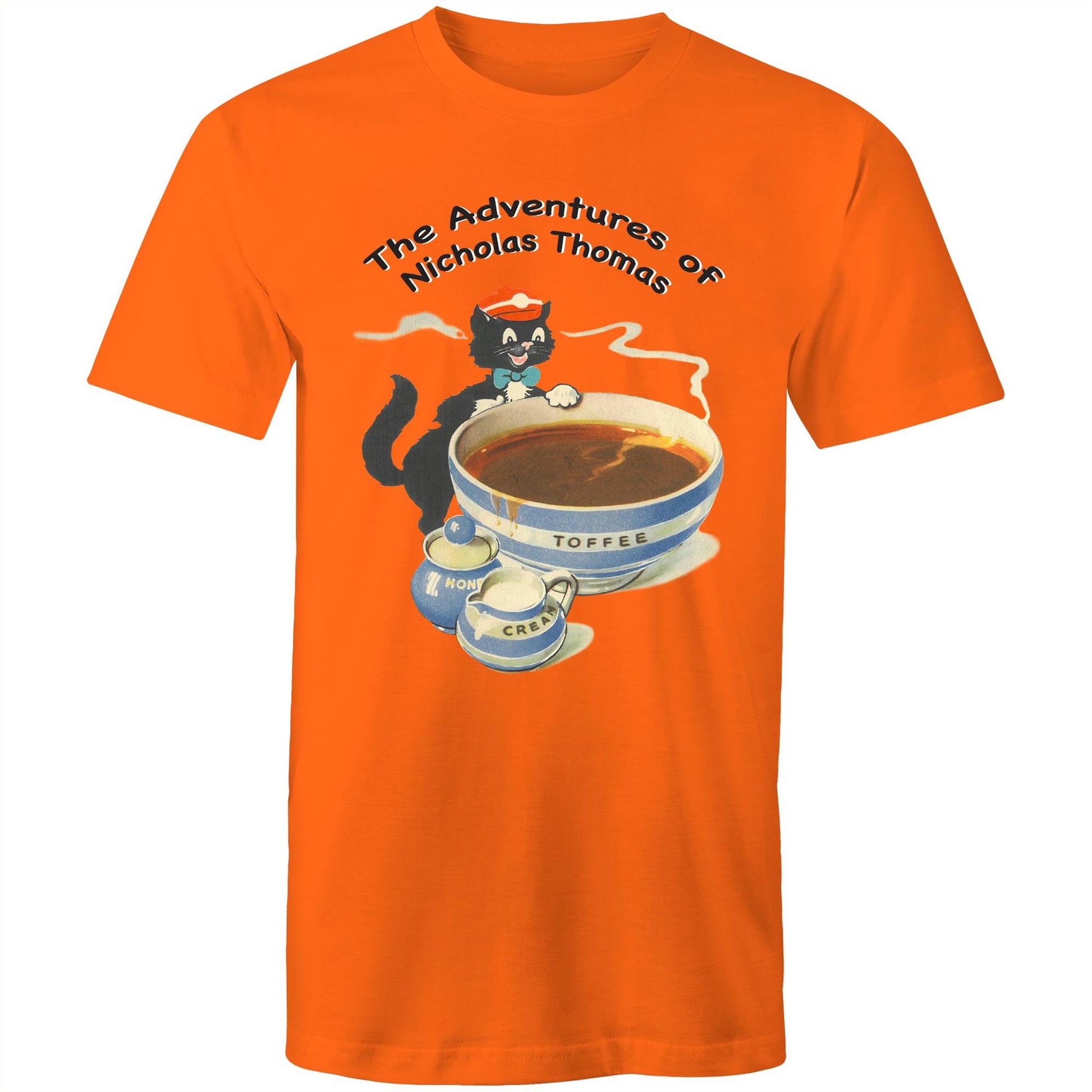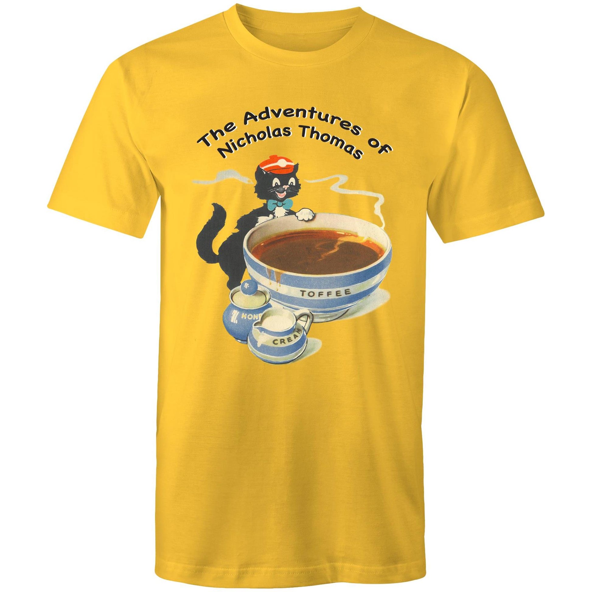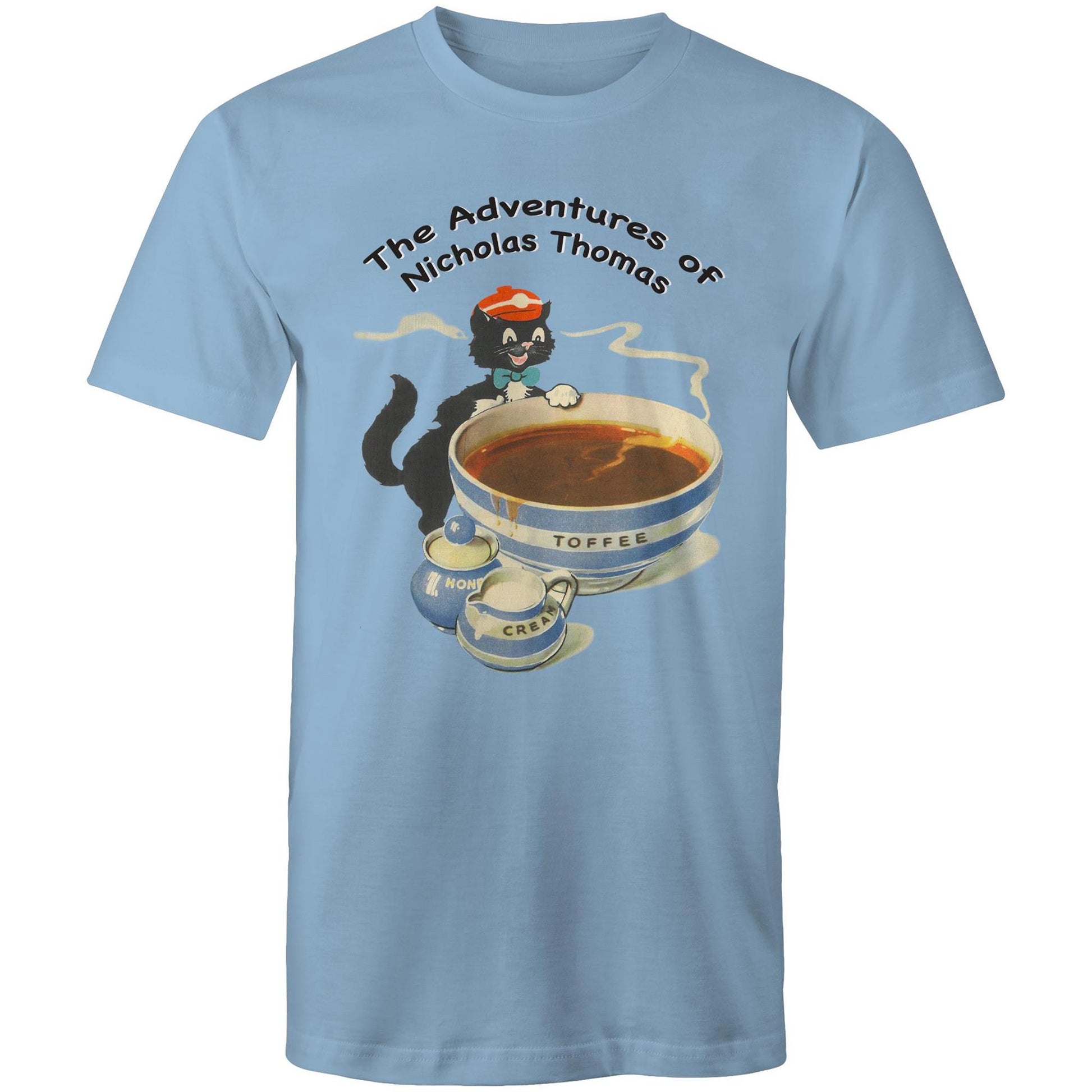 This Men's T-Shirt Features the Adventurous Cat 'Nicholas Thomas' from the 1950's Children's Books by Kitty Styles. Made from beautifully soft 180 GSM 100% cotton, the t-shirt is super comfy with a great modern cut.