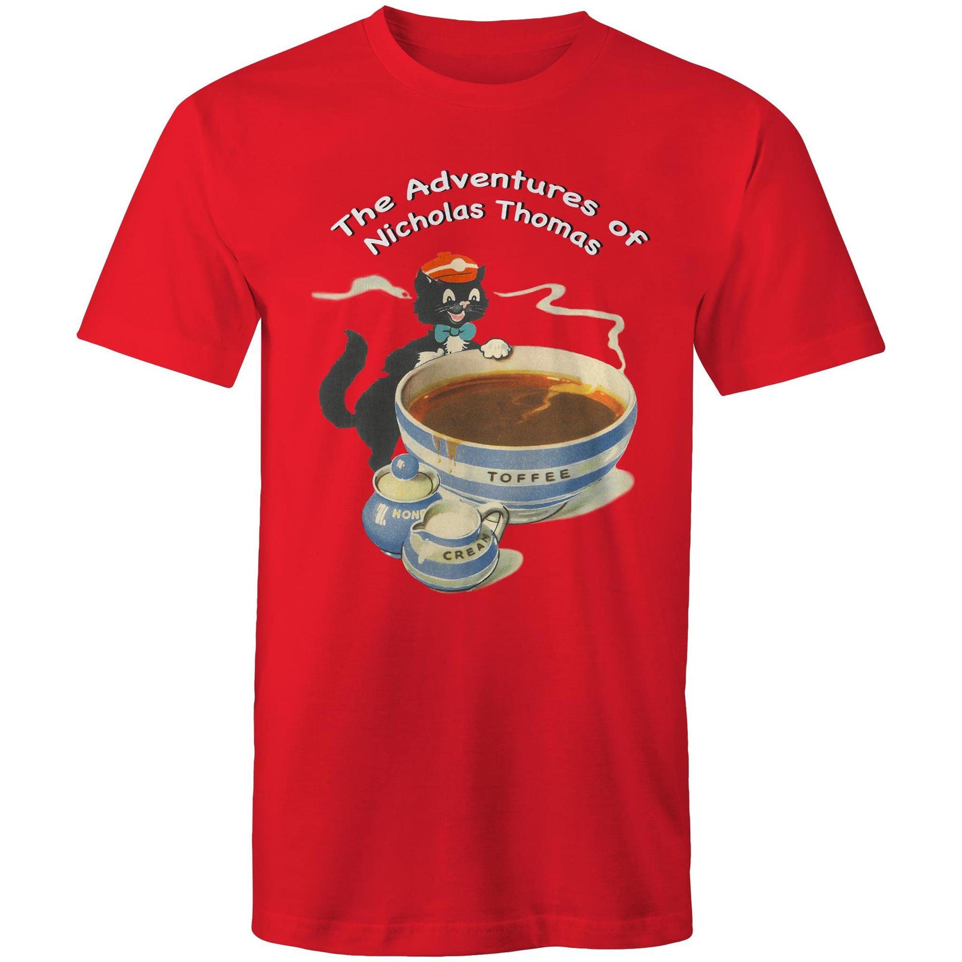 This Men's T-Shirt Features the Adventurous Cat 'Nicholas Thomas' from the 1950's Children's Books by Kitty Styles. Made from beautifully soft 180 GSM 100% cotton, the t-shirt is super comfy with a great modern cut.