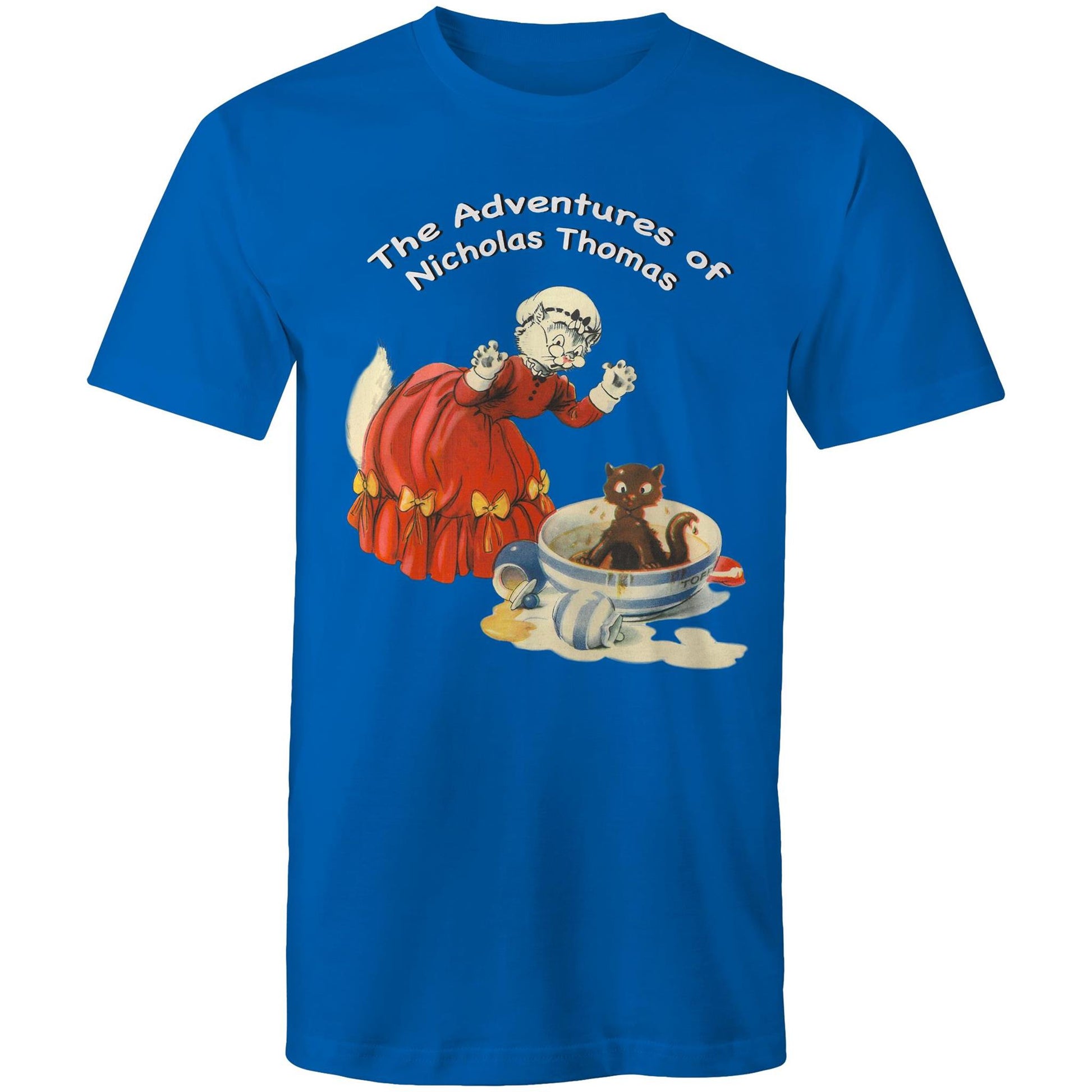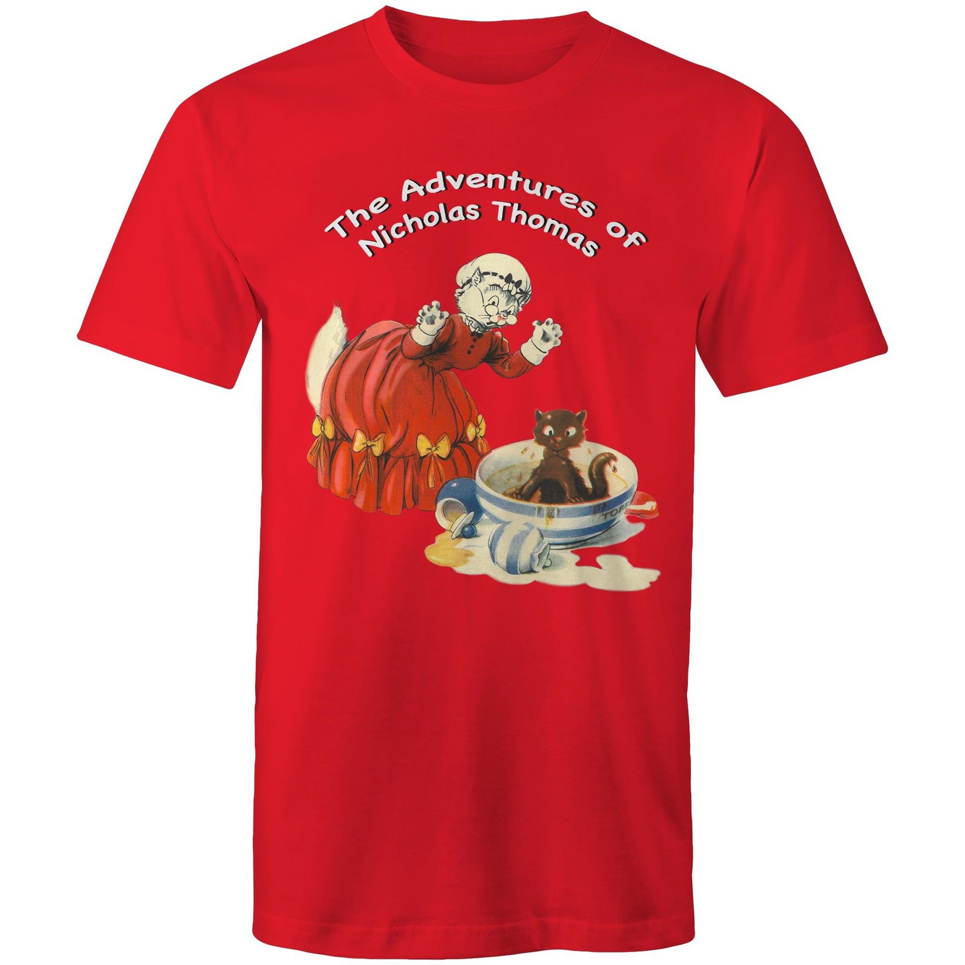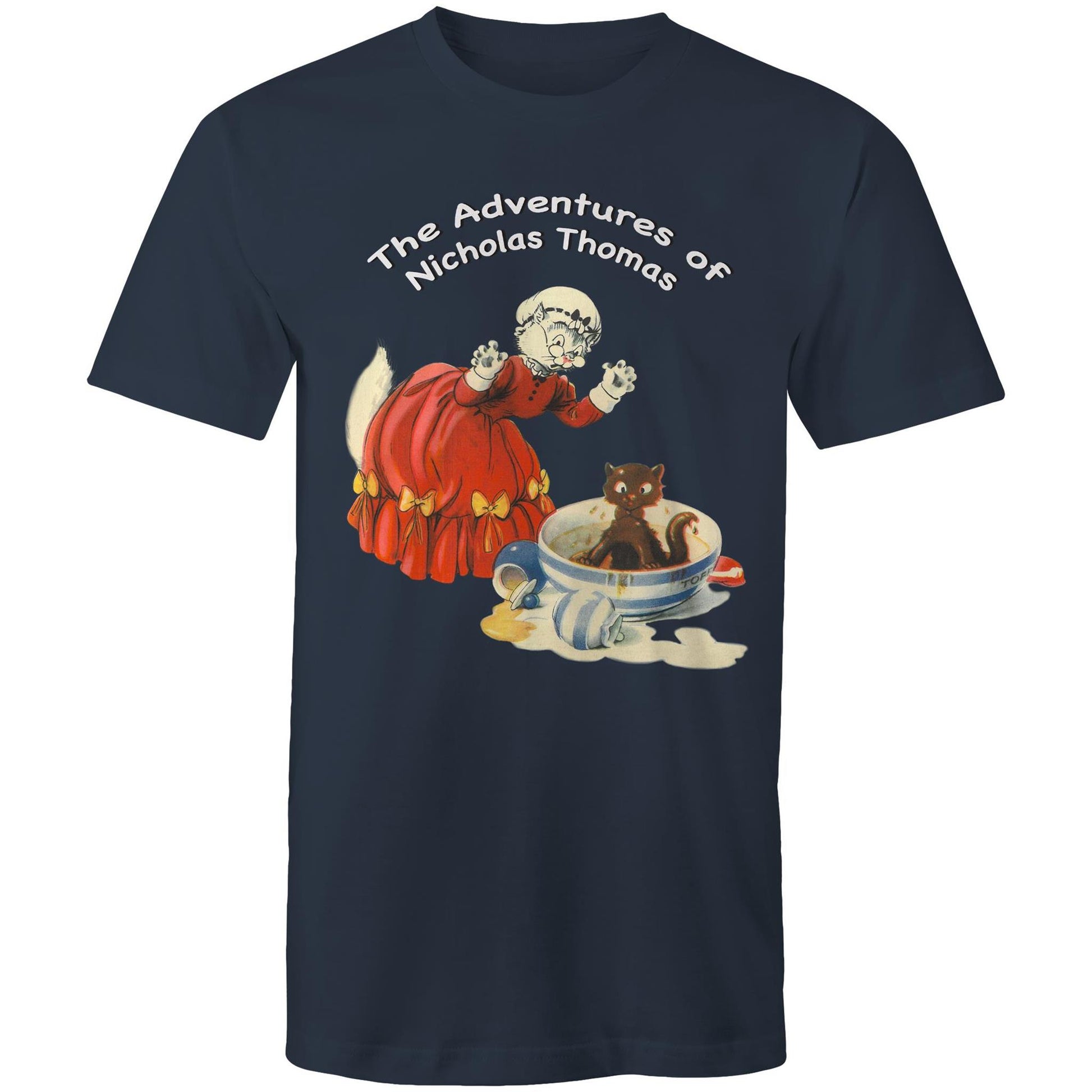 This Men's T-Shirt Features the Adventurous Cat 'Nicholas Thomas' from the 1950's Children's Books by Kitty Styles. Made from beautifully soft 180 GSM 100% cotton, the t-shirt is super comfy with a great modern cut.