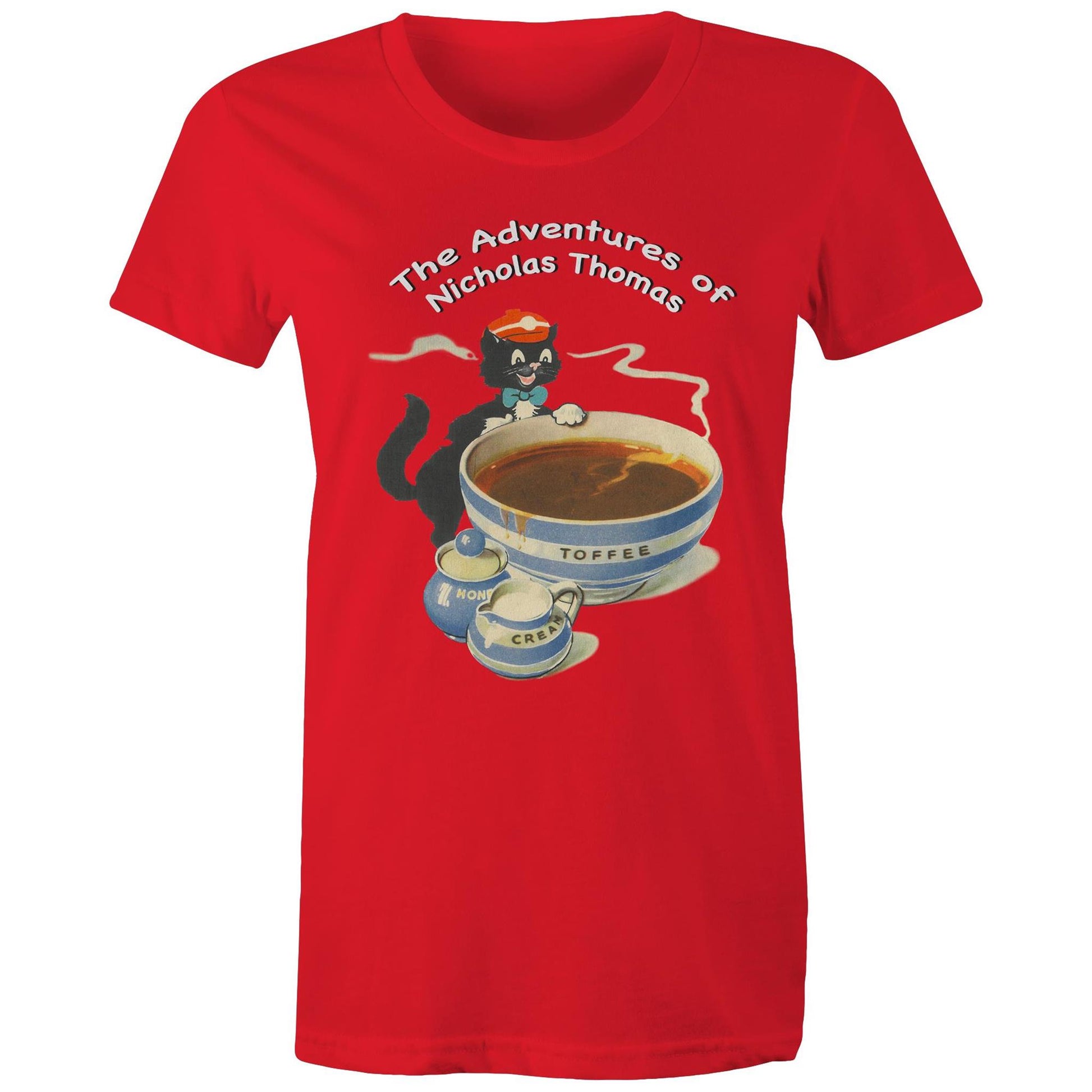 This Regular Fit Women's 's T-Shirt Features the Adventurous Cat 'Nicholas Thomas' from the 1950's Children's Books by Kitty Styles.